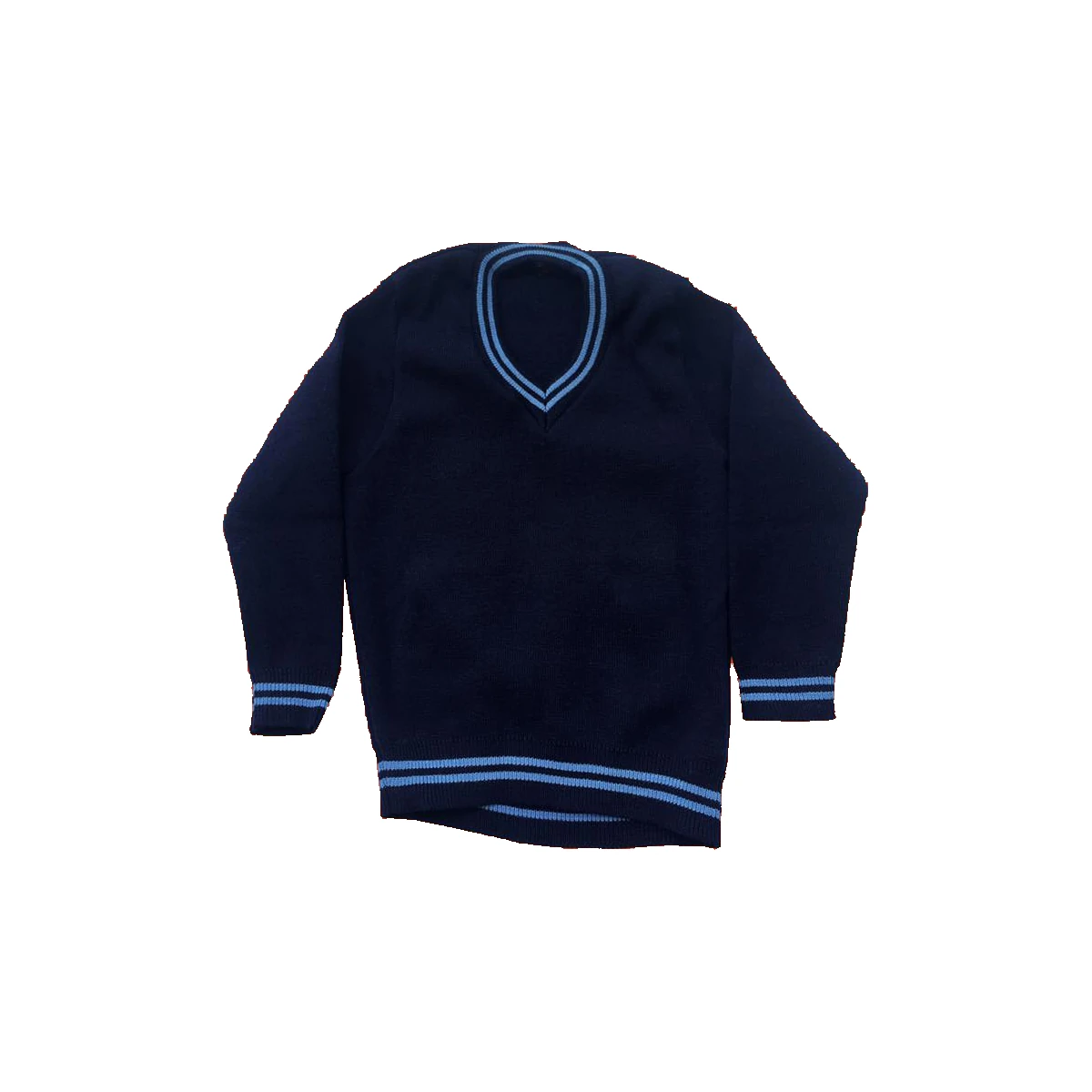 This navy blue V-neck school sweater is designed for daily classroom wear.